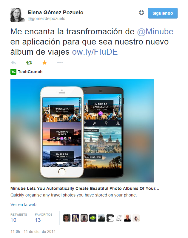 Pues eso… Que la gente de minube está como loca de contentas. Te invitamos para que la descargues y compruebes que es realmente una excelente herramienta para guardar el archivo fotográfico de tus viajes.